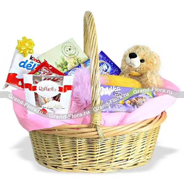 Волшебные подарки - подарочная корзинка со сладостями и мягкой игрушкой